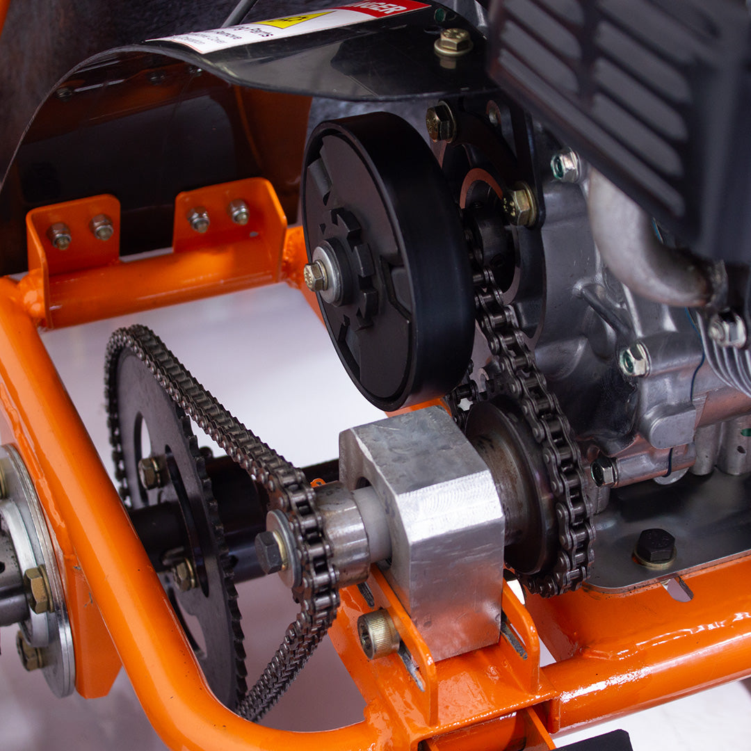 Heavy-duty chain drive system connecting the engine to the rear axle for smooth and efficient power transmission.